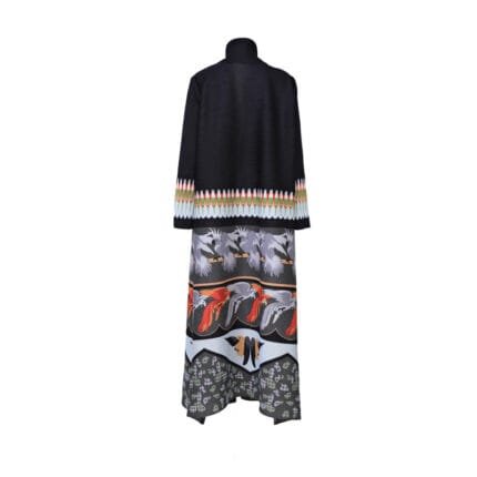 Trendy Black Birds Print Dress with Wide Waist and Long Sleeves