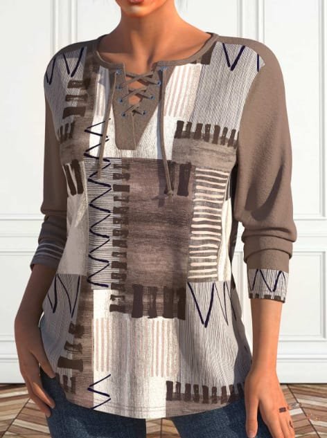 Casual Asian Style Printed Long-Sleeve T-Shirt