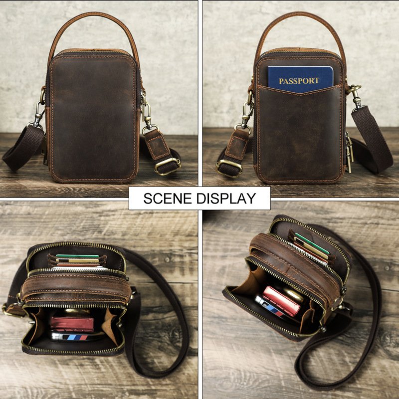 Upgrade your everyday carry with this Casual Leather Messenger Bag, crafted from premium first-layer cowhide for durability, water resistance, and timeless style. Its retro European-American design and solid coffee color make it a versatile accessory for work, travel, or casual outings. Featuring a dedicated mobile phone compartment, this square vertical bag keeps your essentials secure while maintaining a sleek, classic appearance. Durable, functional, and stylish—perfect for modern men on the go.