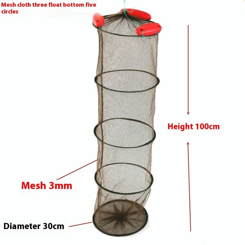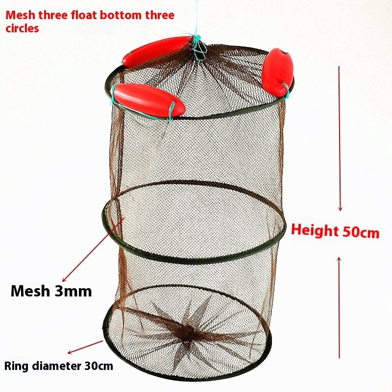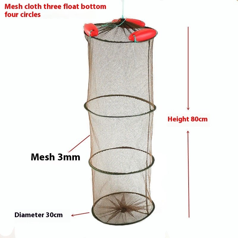 This Float Fish Protection Cage features durable nylon with three, four, or five-ring float options. Perfect for keeping hunted fish, shrimp, and other aquatic stock safe during storage, transport, or breeding. Lightweight, sturdy, and portable.