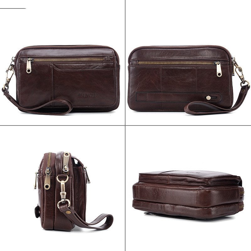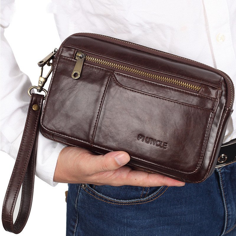 The Leather Envelope Handbag is a stylish and functional clutch designed for modern men who value elegance and practicality. Crafted from premium first-layer cowhide leather with an embossed finish, this small horizontal square bag offers a large-capacity interior to organize essentials efficiently. Its zipper closure ensures security, while multiple compartments make it ideal for bills, cards, passport, and other personal items. Perfect for casual outings, business, or travel.