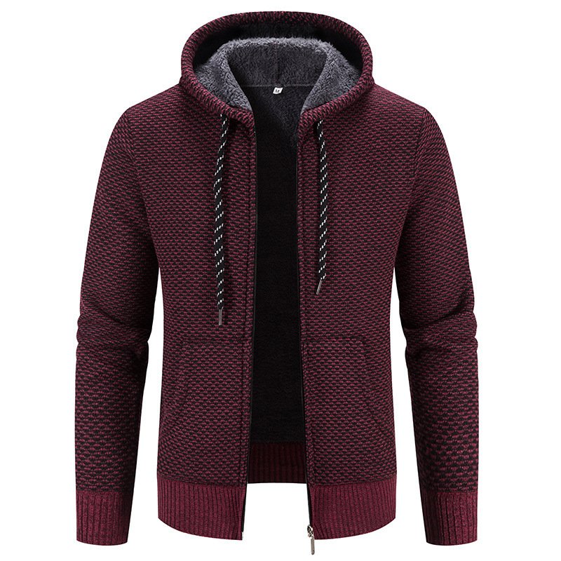 Men’s Winter Plush Zipper Coat | Thick Warm Fleece Jacket with Hood & Drawstring | Casual Long Sleeve Cardigan