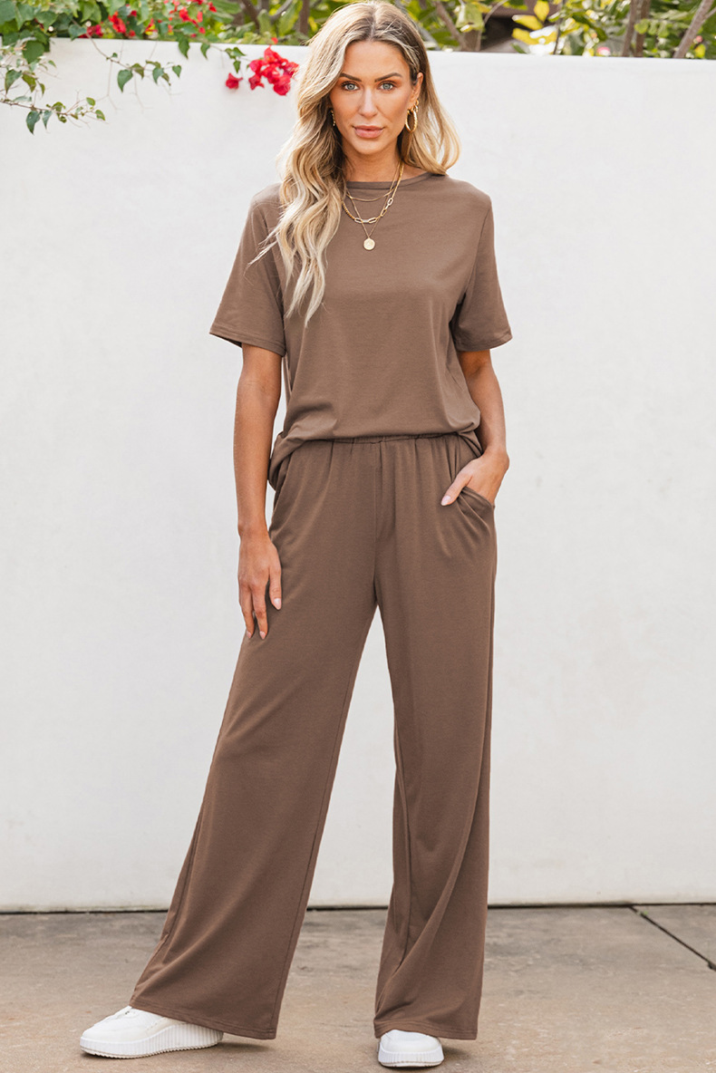 This stylish and casual suit is a perfect blend of comfort and modern design. Featuring a solid color pattern, this two-piece outfit includes a quarter-sleeve top with regular sleeves and matching trousers with practical pockets. Crafted from soft, durable polyester, it offers a relaxed yet fashionable look, ideal for casual outings. The set is available in classic Black and Brown, providing versatile styling options. The suit is lightweight, weighing only 660g, making it comfortable for all-day wear. Available in sizes S to XL, it’s a great addition to your wardrobe for a laid-back, chic look.